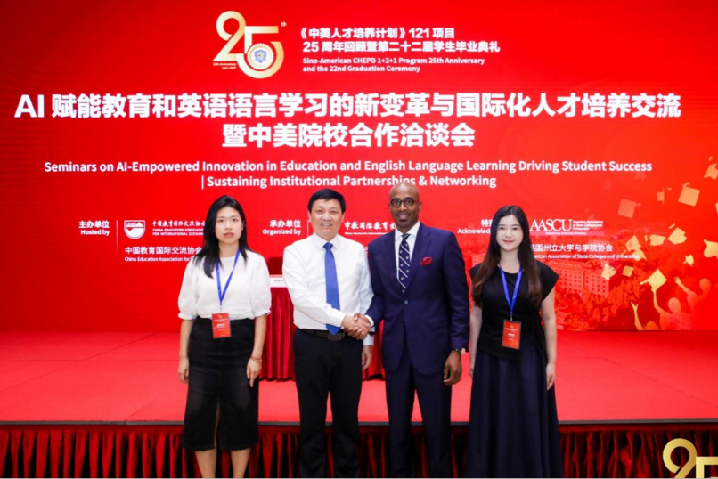 2025年6月9日至6月11日,《中美人才培养计划》 121项目25周年回顾暨第二十二届学生毕业典礼在北京隆重举行。中国教育国际交流协会、中教国际教育交流中心、美国州立大学与学院协会及121项目60多所中美院校相关领导及代表出席本次会议。beat365执行校长方伟华、国际交流合作部对外交流科副科长梁翠珊、国际交流合作部对外交流科科员陈卓怡受邀前往北京参会。