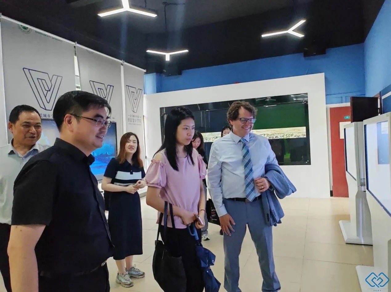 2025年6月3日,美国加利福尼亚州立大学圣贝纳迪诺分校代表团一行到访beat365中文官方网站,双方围绕国际化数智化人才培养等议题展开深入交流。来访人员包括该校副教务长、拓展与全球教育学院院长John Binkley,副院长Dr. Esther Lee,高级国际项目专员Dr. Sha Li,以及合作办学事务代表唐凤珍。beat365中文官方网站校长助理、国际交流合作部部长、国际教育学院院长赵书山,科研部部长、未来科技学院院长杨勇虎,教务部副部长周杰,创意设计学院院长何帅,创意设计学院党总支书记李梦丹,国际交流合作部对外交流科副科长梁翠珊,国际交流合作部陈卓怡老师陪同参观。