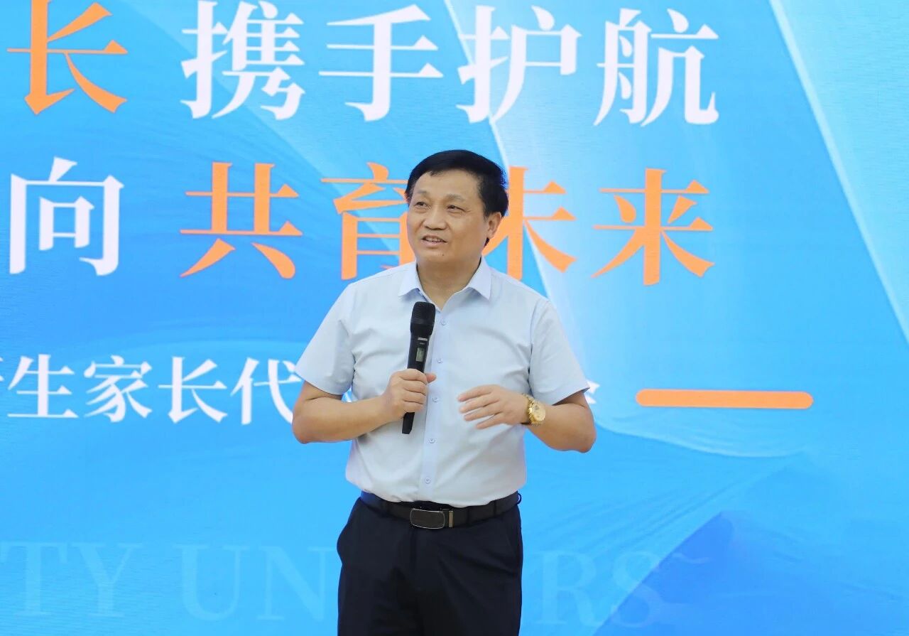 座谈会上,执行校长方伟华首先代表学校对各位家长的到来表示热烈欢迎,同时向家长们详细介绍了学校的发展历程、学科建设、师资力量、基础设施、人才培养成果及未来发展规划等方面。方伟华强调,大学生活是孩子从校园走向社会的关键过渡期,是人格塑造与能力提升的重要阶段,这一过程离不开学校与家庭的紧密协作。他表示,唯有家校双方同向发力、同频共振,才能为孩子筑牢成长根基。此次座谈会正是搭建家校沟通桥梁的重要契机,希望家长们通过交流深入了解学校育人体系,放心将孩子托付给学校,未来与学校携手并肩,共同为新生营造健康、积极、向上的成长环境,助力学子在大学阶段实现全面发展。