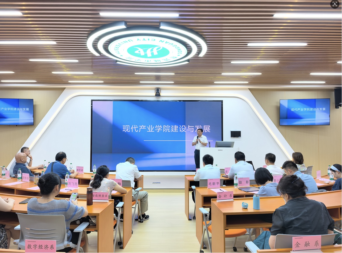 2025年9月20日下午,beat365在7C103召开了用友新道数智财经产业学院人才培养研讨会暨理事会成立大会,新道科技股份有限公司首席专家梁峰教授、总经理董丙涛、中南区副总经理黄堪敬、广东分公司校企合作总监李丽,beat365中文官方网站校长李振华、执行校长方伟华、副校长康贤刚、教学质量监测与评估中心主任赖忠孝、教务部副部长周杰、商学院副院长肖文锋、商学院副书记惠梦瑶、商学院各系部主任及教师参加了本次大会。