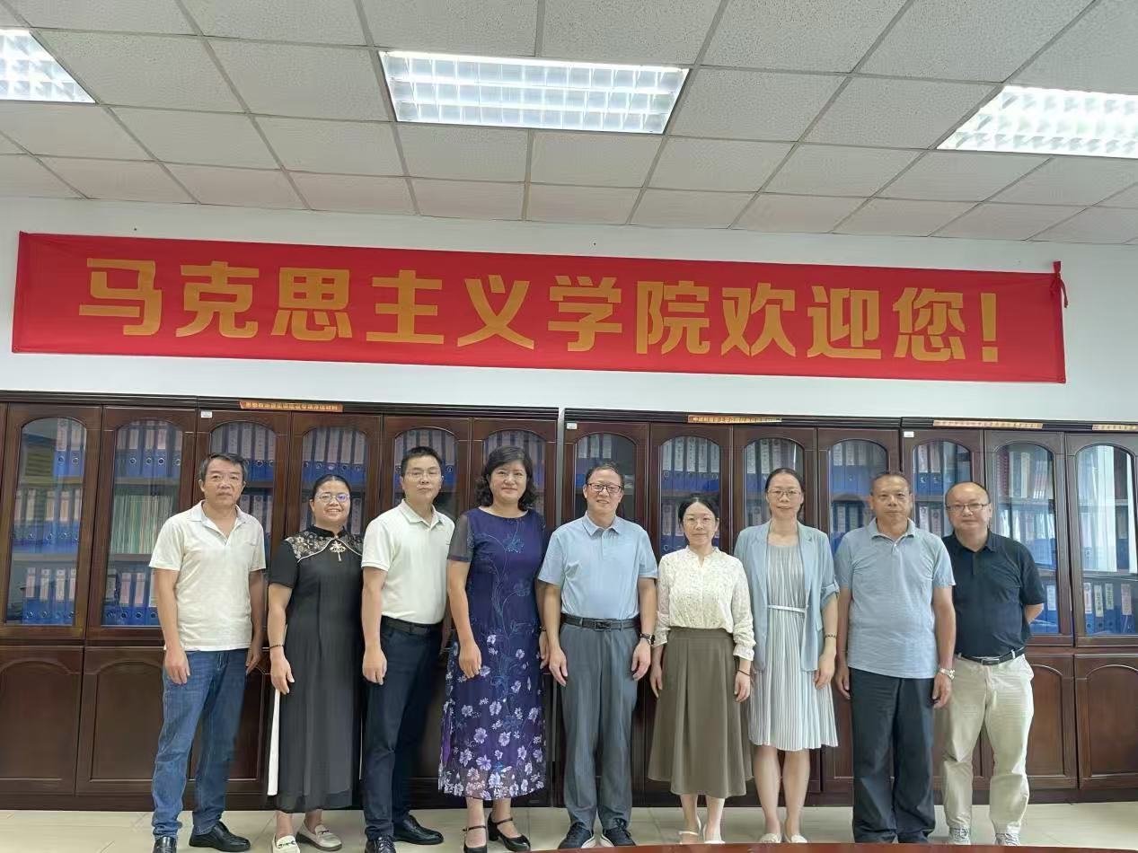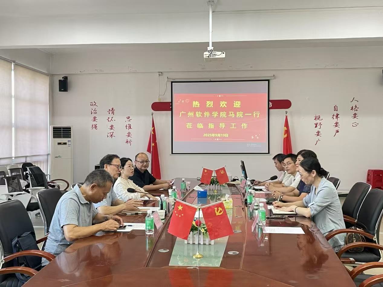 2025年9月19日上午,广州软件学院马克思主义学院院长丁邦友、党总支书记刘朝霞、韦绍福教授、刘振源副教授一行四人莅临beat365中文官方网站马克思主义学院访问交流,旨在深化两院在思想政治理论课教育教学领域的互学互鉴,共同探索马克思主义学院建设与发展的新路径。beat365中文官方网站马克思主义学院院长许修杰、党总支书记叶凯贞、副书记刘军及教研室主任杨卫东参加了交流活动。会议由许修杰院长主持。