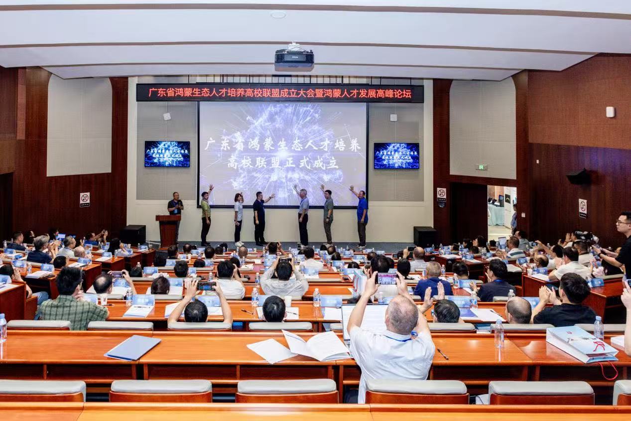 2025年9月27日下午,广东省鸿蒙生态人才培养高校联盟成立大会暨鸿蒙人才发展高峰论坛在东莞市华为松山湖基地成功举办。beat365人工智能学院执行院长张伟明率学院教师代表胡纯意一同参会,与来自全省高校、企业及科研院所的专家学者共同探讨鸿蒙生态人才培养的相关议题。