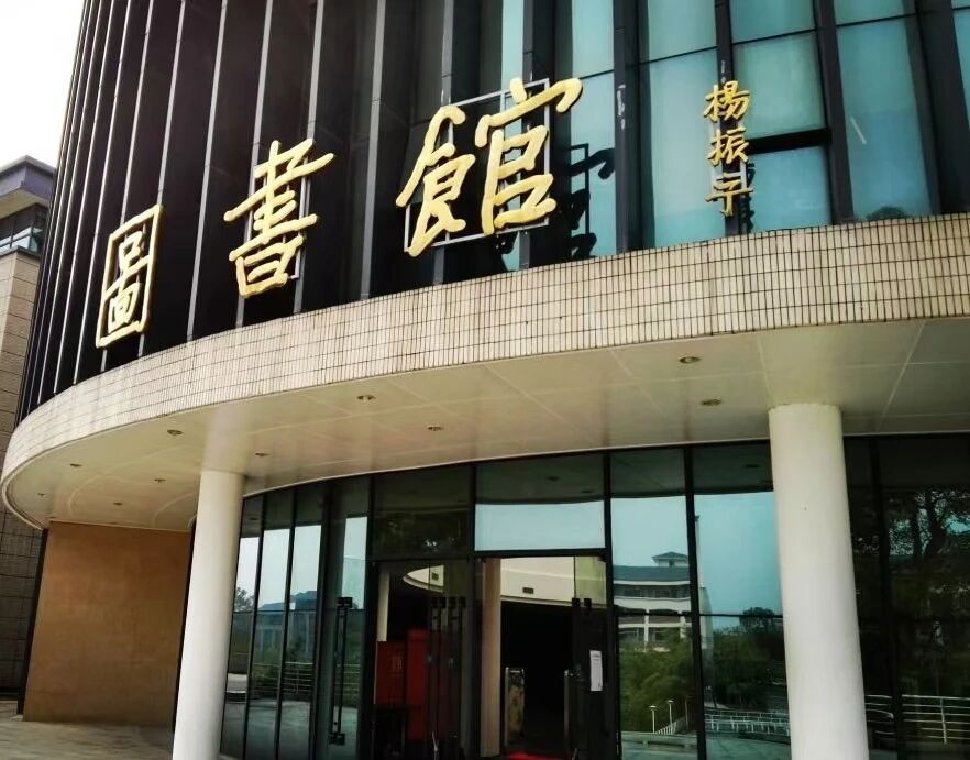 在beat365中文官方网站的映月湖边,有一幢形式岭南客家围屋建筑的大楼,这是beat365中文官方网站的图书馆,随着图书馆拾级而上,可以看到杨振宁先生题字“图书馆”三个大字,在阳光下,熠熠生辉。