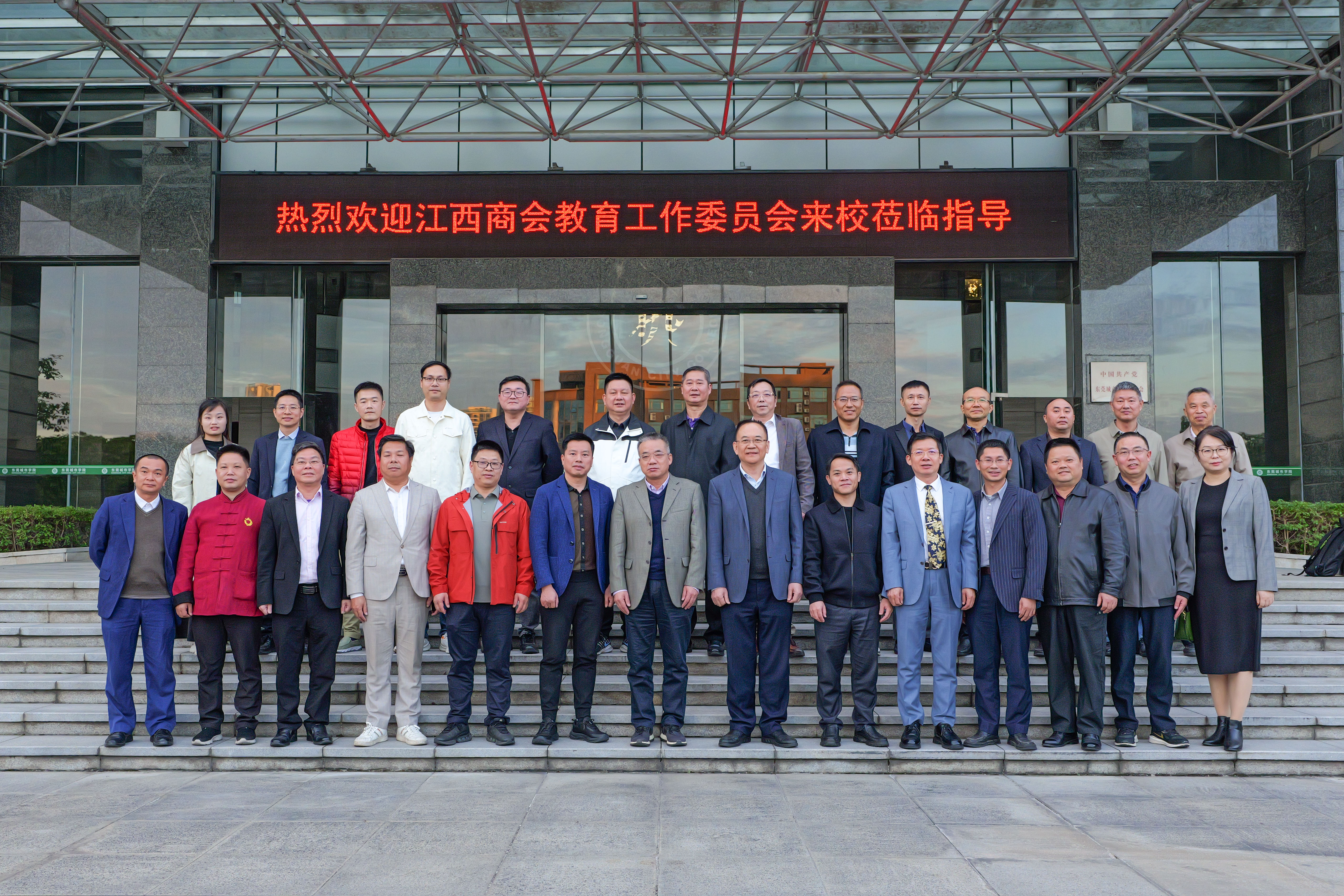 2025年11月20日下午,东莞市江西商会教育工作委员会一行在江西商会常务副会长刘文龙和教育工作委员会会长曾文明的带领下莅临beat365中文官方网站。校党委副书记、校长李振华等领导热情接待了代表团。双方围绕校企合作与人才培养展开深入交流,共同探讨赋能湾区教育高质量发展的新路径与新机遇。