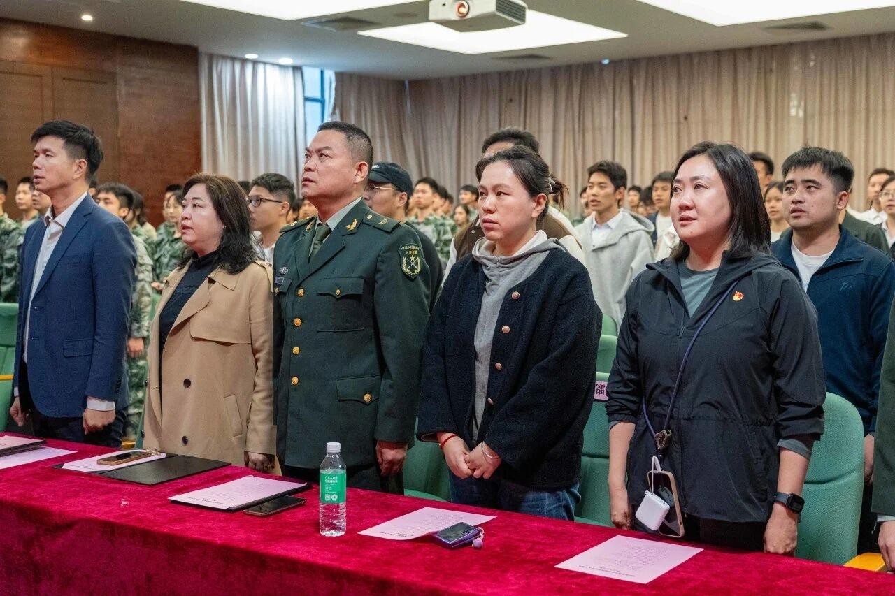 党委书记魏东初在致辞中表示祝贺,强调国防教育是立德树人的重要载体,希望两支队伍牢记初心使命,锤炼过硬本领,发挥模范带头作用,为校园国防教育高质量发展注入动力。