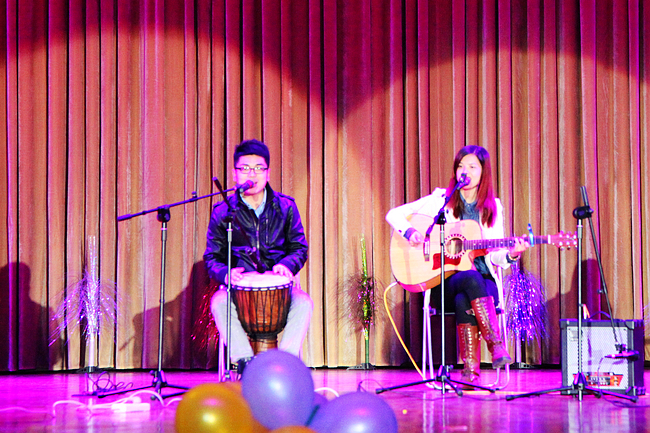 一男一女,一把吉他,一个手鼓配上默契十足的声线配合,一股清新的《爱要坦荡荡》迅速蔓延现场。风烙舞队带来充满西域风情的《阿拉伯之夜》舞蹈,金光闪闪的舞服、柔软的肢体动作配合着充满诱惑的眼神吸引了观众的眼球,欢呼声、掌声接连不断。在激扬律动的气氛中,穿着时尚环保服装的帅气靓丽模特们和金贸系辅导员联手为观众呈上了青春时尚的混搭show;辅导员一改平日严肃的风格,纷纷穿上可爱的衣服伴上可爱的舞蹈动作,引得同学们哈哈大笑;在烟幕环绕,古典伴奏中,模特们带来了美轮美奂的视觉冲击。别具一格的手指舞蹈《 soon we will be found》,舞动的白手套,整齐划一的动作,灵活的手指摆出种种图案,一会儿是绽放的花朵,一会儿是飞翔的白鸽,淋漓尽致的阐释了曲中之意。小品《清唱团》延续无厘头风格,用滑稽的动作表演及夸张的神态讲述了参加中国好声音的选手卢小居一路历程,既有少林武术,也有合唱队的实力合唱以及各种吐槽物价上涨的搞笑段子,赢得了阵阵喝彩。舞蹈精灵OLT用舞蹈诠释着大学生的青春活力,一系列的高难度动作high翻全场,接连的地板动作更是让观众们大为惊叹,将晚会推上高潮。三人深情对唱的《画心》演绎了爱情中的爱恨情愁,让观众如痴如醉。