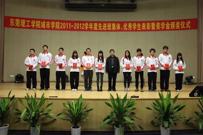 章德胜副书记宣读 《关于表彰2011-2012学年度先进班集体、校园十佳、优秀大学生、优秀干部及奖学金获得者的决定》,18个班级获得“先进班集体”称号,10位同学获得“校园十佳”称号,1577位同学获得“优秀大学生”称号,1005位同学获“优秀学生干部”称号;20位同学获得“鸿发奖学金”,50位同学获得“鸿发励志助学金”,共有1744位同学获“一、二、三等奖学金”及“单项奖学金”。