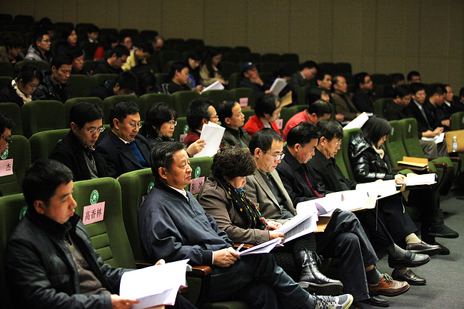 机关、教辅部门今年的工作怎么样?教职员工满意不满意?12月26日,学院在学术报告厅召开民主测评会议,请各系部教工代表、特邀民主党派与无党派代表,对机关、教辅部门2012年的工作测评打分。