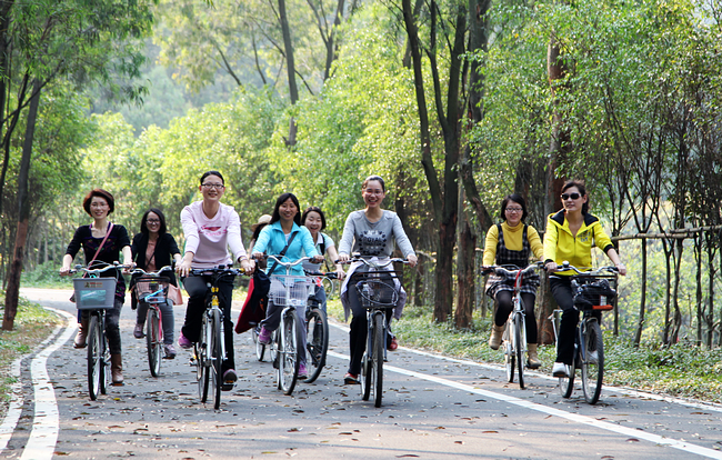 3月8日妇女节,院工会组织青年女教工骑车畅游佛灵湖。