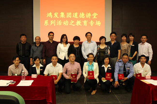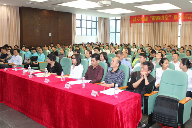 4月27日,为了传承中华民族优良文化传统,弘扬鸿发集团的企业文化,鸿发集团“道德讲堂系列活动”之教育专场在行政楼112室开讲。院党委副书记朱冰,院长助理麦绮琳,鸿发集团人力资源部副总监、集团工会主席吴季伟出席会议,鸿发教育公司、鸿育后勤公司及艾立森幼儿园等150多位员工参加了会议。