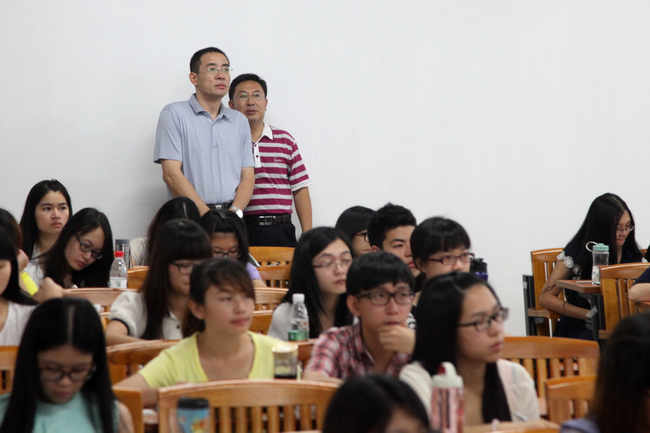 9月2日是2013—2014学年开学第一天。上午,院长杨敏林、院督学陈丁堂等检查上课情况。