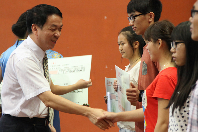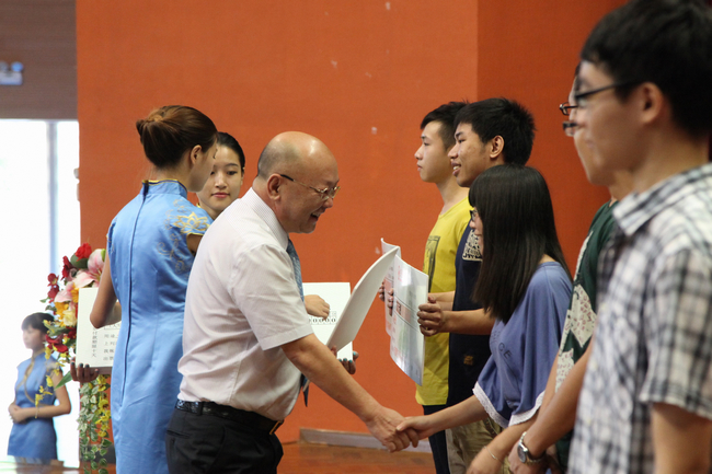 典礼在高昂雄壮的国歌声中拉开了帷幕。章德胜副书记首先宣读学院《关于表彰2013年新生奖学金获得者的决定》,黎港健等20名同学荣获我院2013年新生一等奖学金,曾夏汝等35名同学荣获我院2013级新生二等奖学金,共计55位城院录取的2013级优秀新生获得表彰。学校领导分别向优秀新生代表们颁发了奖学金。