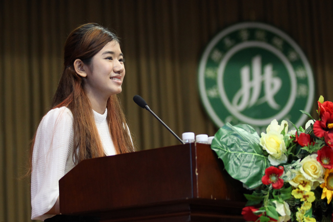 艺术系张慧欣同学代表新生在典礼上发言,向老师和同学们表明了作为新生的决心,讲到大学不该是最后的狂欢而是成功的起点,我们应要好学自强、强身健体,争做一名有所为的新新大学生。院学生会主席陈琳琳在发言中,提到城院处处有惊喜,建议新生们要积极参与课外活动,在锻炼中做一名自信的大学生。