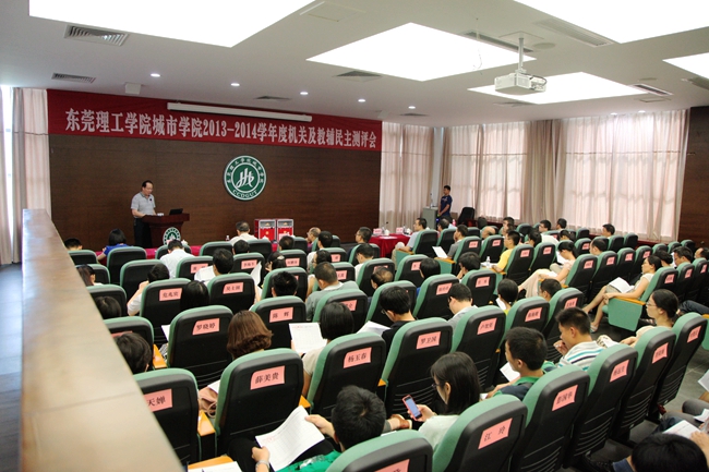 民主测评会上,11个机关教辅部门的负责人分别向大会代表进行述职,汇报本单位一年来的工作完成情况。各位代表成员按《东莞理工学院城市学院机关、教辅单位(服务对象)2013-2014学年度考核测评表》和《东莞理工学院城市学院机关、教辅负责人2013-2014学年度考核测评表》打分。