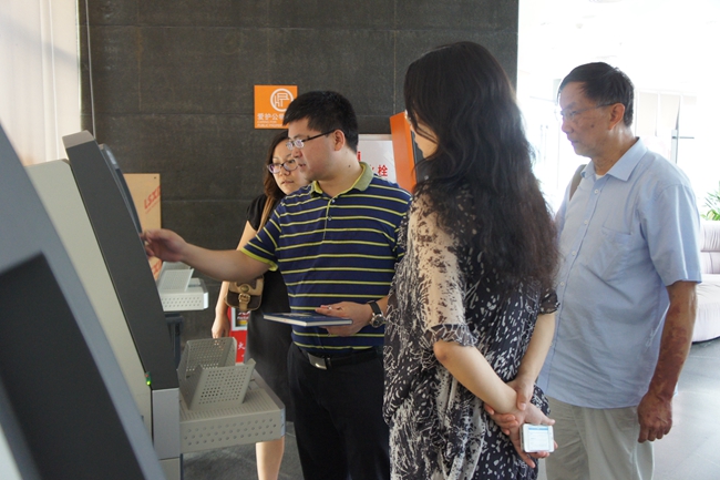 图书信息中心负责人陈显龙向到访的客人们介绍了我院的发展历程、办学特色以及图书馆建筑布局、馆藏规划、管理方式、服务模式等情况。双方就图书借阅管理、勤工助学学生管理、读书协会运作等业务工作进行了交流。