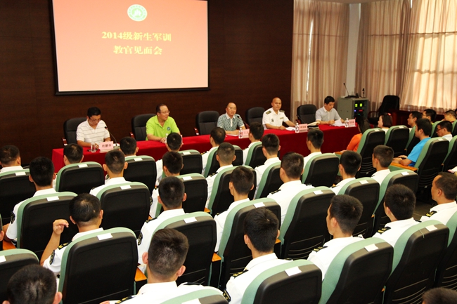 按照教学计划的安排,大一新生的第一课是军训。9月14号下午5时,承训部队海军沙角部队的全体教官抵达城院。我院在行政楼112室举行教官与指导员见面会。院党委书记王卫平、副书记章德胜、副院长高香林等领导出席本次会议。