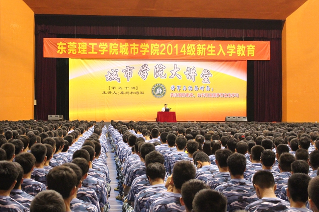 在“九一八”前夕,我院邀请海军某部将军秦兴和少将在综合馆为2014级军训新生作国防知识讲座。据了解,秦将军曾任沙角部队政委、东海舰队政治部副主任、南海舰队政治部副主任、广州舰艇学院政治部主任、海军指挥学院政治部主任及海军潜艇学院政委,曾多次来我院讲南海的历史由来,痛斥外国列强企图侵占这片海域的狼子野心。
