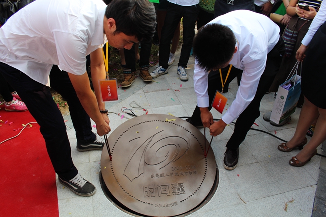 什么是时间囊?时间囊就是一个贮藏货物或资料用的物品,是一种与未来人沟通用的一种方法。在时间囊启动仪式上,学院领导、历届校友代表及部分学生,纷纷把自己认为重要的物品投进时间囊里,有的是自己精心制作的卡片,有的是自己一笔一划写下的信件。在埋下时间囊的同时,也开启了时间隧道,将心愿和梦想传递给未来十年的“城院人”,让每一位“城院人”共同见证城院的发展历程,见证城院的成就与辉煌。