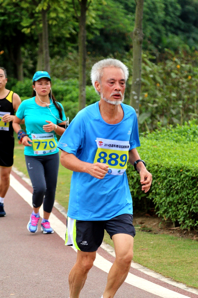 “我经常锻炼身体,奔跑虽累,却能让我快乐。心没老,觉得自己很年轻,我还超过了好几个在我前面的年轻人,我的参赛也希望是对年轻人的一种鼓励吧!”