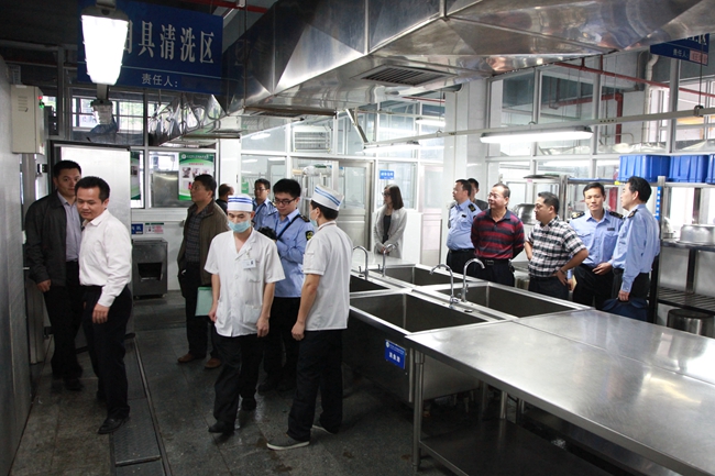 省、市、镇三级食品药品监督管理职能部门的领导、专家及工作人员,实地查看了食堂的硬件建设、生产制作流程与规范等实际情况,查阅了食堂管理的规章制度、索证、留样及培训等文字材料,并对员工进行了情况了解和调查。评审小组充分肯定了我院开展“广东省食品安全示范食堂”创建工作所取得的成绩。