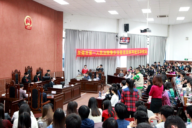 11月17日,东莞市第一人民法院寮步法庭巡回审判在我院模拟法庭实验室举行。这是东莞市第一人民法院首次将真实的民事案件放在高校进行审判。