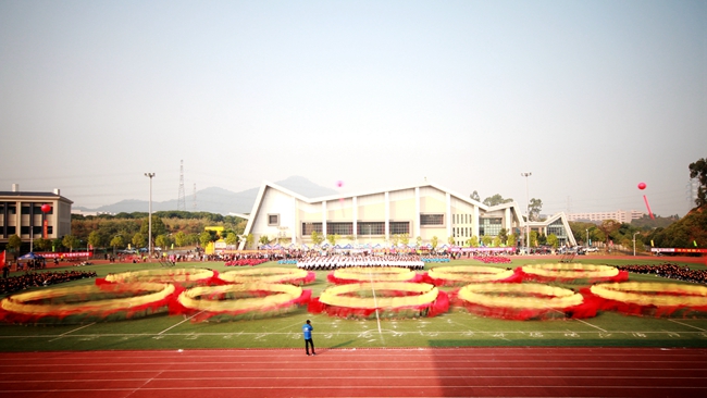 主题为“祥和?奋进?拼搏?飞扬?十年”的大型团体操表演是本届运动会又一亮点,获得运动健儿的一致点赞。它是由我院体育教学部策划主创,以“十年校庆,十年精彩”为理念,由2000名大一新同学共同表演完成的。