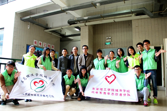 12月9日,东莞市肢残协会郑穗生副主席携同莞科社工刘苑容来到我院,给机电系和文传系志愿者赠送“热心公益”的锦旗,以感谢志愿者在东莞市虎英公园由东莞市残联和莞科社工举办的“我梦想我登高”残疾人登高游绿道活动的付出。