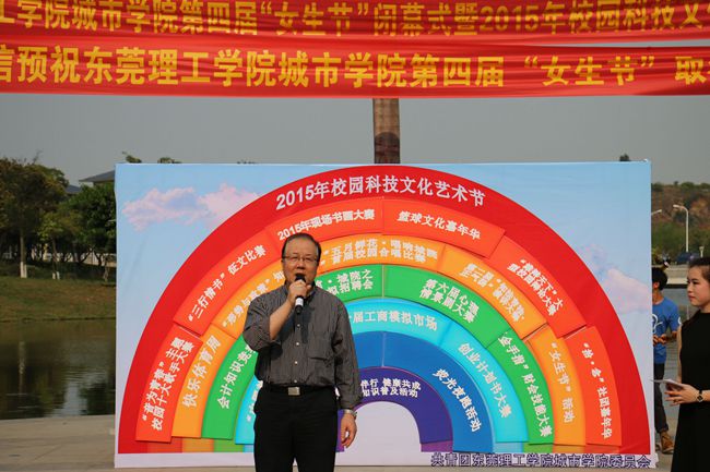 3月19日,2015年城市学院校园科技文化艺术节开幕式暨第四届“女生节”闭幕式在下沉广场隆重举行。党委副书记章德胜,党委委员、学生处处长杜鹏举出席本次活动。