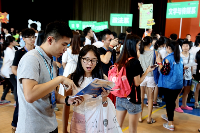 办好这些手续,陈晓斌来到自己所在的城环系。城环系的志愿者的着装让他感到深有“创意”——绿色衣服,戴着红领巾。这些师兄师姐们正热情友好地招待着师弟师妹,耐心地解答疑惑。在陈晓斌交完自己的相片和学生档案后,一个鲜红的“已注册”印章盖在流程单上,陈晓斌正式成为城院的学子了!