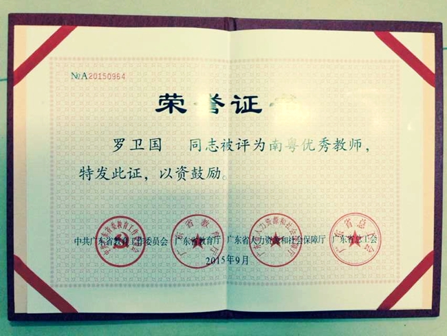 值此教师节来临之际,从刚刚结束的广东省庆祝教师节表彰大会上传来好消息,我院财经系主任罗卫国教授荣获“南粤优秀教师”称号。