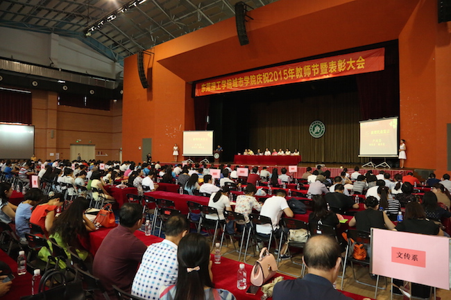 9月10日下午,城市学院庆祝2015年教师节暨表彰大会在综合馆隆重举行。城市学院董事、广东鸿发投资集团有限公司副总裁黎建烨,院长杨敏林及其他院领导,全体教职工出席大会。大会由黄兢副院长主持。