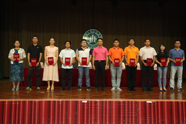 黎建烨董事为获奖教工颁奖并合影留念
