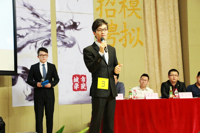模拟招聘会在院党委副书记章德胜热情洋溢的致词中拉开序幕。比赛共分5个环节:自我展示、职场问答、专家点评、岗位推荐和专业评分。