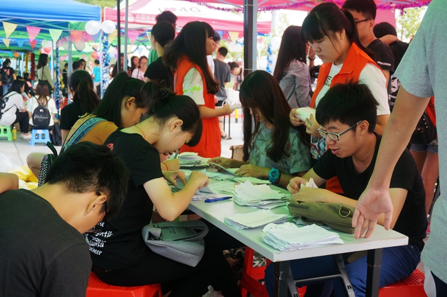 一张窄窄的桌子,一群怀着对系部参赛者最大支持的伙伴们,静静地埋头用自己内心的言语,写下最动听、最有力量的加油稿。当正在跑步、跳高、跳远的运动健儿们,听到如此温暖人心的助威呐喊,必定会爆发出自己的无限力量,跑得更快更稳,跳得更高更远。(黎佩珊 肖泽鑫)
