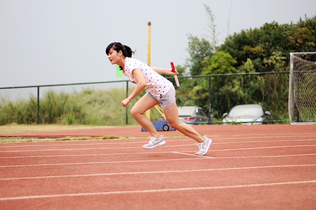 四位选手的接力,四圈操场的狂奔,汇聚的不仅是各系的荣誉,还有各系同学们的团结之心。每一次交接棒,都仿佛要把所有的力量传给下位同学;自信、坚持、团结、勇气…所有的力量仿佛都在这历史性的一刻,全数汇聚到那根红白相间的棍棒中。