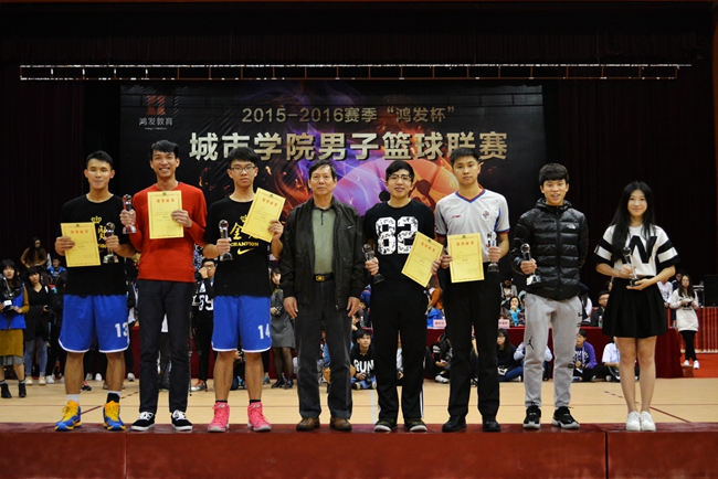 2015-2016赛季“鸿发杯”城市学院男子篮球联赛决赛,12月10日下午由金贸系对阵管理系进行巅峰对决,最终金贸系以86∶62成功卫冕夺冠,管理系则获得亚军。