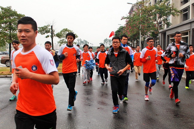 章德胜副书记做了热情洋溢的致辞,指出作为公益活动,“微马”提倡“平等、时尚、阳光、健康”,希望广大师生积极参与其中,增强身体素质、增进人际关系,传播正能量。同时也希望微马队走进学院之后,成为一项常态化运动。随后,身穿橙色服装的运动者们挥舞着红旗,欢快地沿着校道进行了5公里长跑。