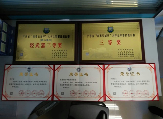 12月26日,由中共广东省委宣传部、广东省教育厅、广东省军区司令部、广东省军区政治部在全省高校系统联合举办“南粤长城杯”大学生军事技能比赛活动落下帷幕。我院参赛队伍荣获大学生军事技能比赛三等奖、轻武器拆装三等奖,保卫办刘维仝、王守滨同志分获优秀领队、优秀教练员称号。