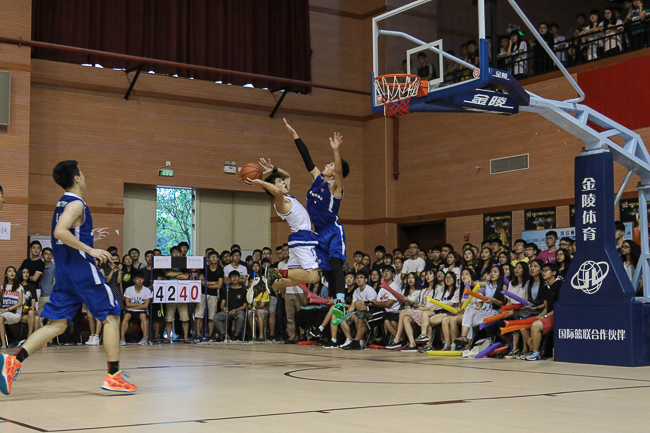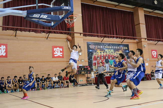 比赛一开始,莞工队采用全场122夹击防守造成我院失误,利用快攻反击先下一城。我院男篮随后依靠篮下强攻和犀利突破,在第二节打出23:7的高潮。上半场结束时,我院以38:29带着9分的优势进入下半场。