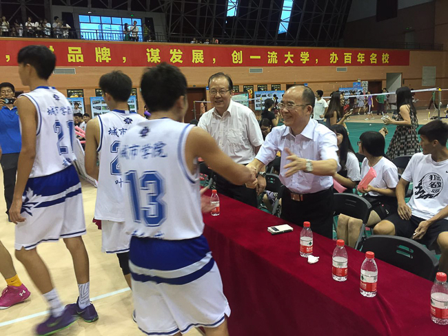 5月27日,我院男篮主场迎战莞工队,在距离比赛结束前2秒以63:61两分的优势“绝杀”对手取得胜利,这也是莞工队自开赛来首遭败绩。我院院长王卫平,党委副书记章德胜等领导到场观看本场比赛.