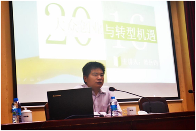5月28日,我院管理系黄岳钧副教授应惠州龙门县人力资源局邀请,为该县100多名干部作了一场题为《大众创业与转型机遇》的学术讲座。