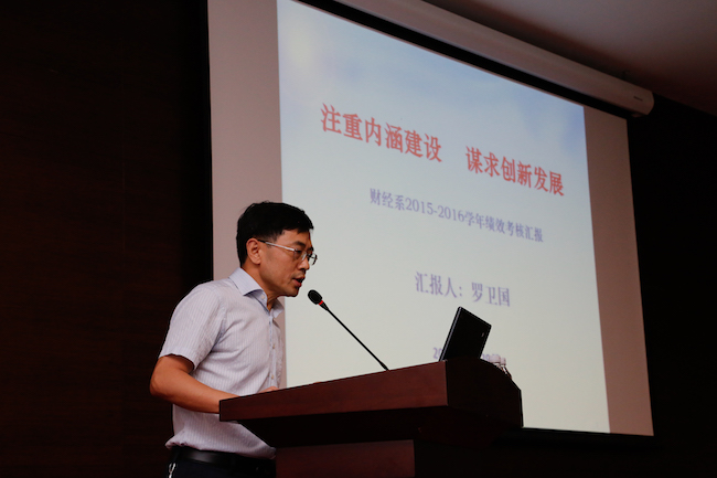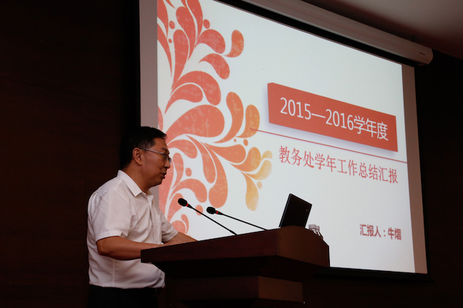 会上,12个教学部门主任和12个行政教辅部门负责人根据绩效考核的指标和内容,分别汇报了本学年度工作的完成情况、创新与亮点、存在的问题,以及下学年工作展望等。