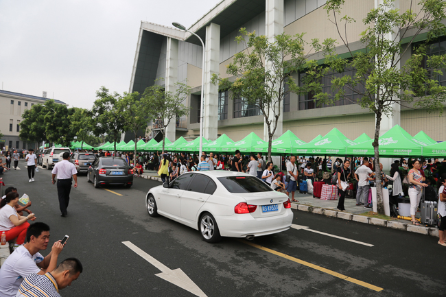 尽管上午的天空一度大雨磅礴,但室外安保人员、交通指引志愿者、师兄师姐们仍坚守在自己的岗位,为新生及家长们提供便利与帮助。