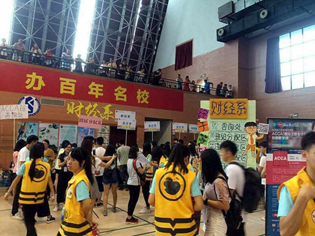 为了让新生更顺利地到系部大本营办理报到手续,工作人员提前分工,各尽其责。随处可见的醒目的指引牌、场内遍布的身着黄色财经系系服的工作人员、场外引导员都使得报到现场秩序井然,让财经系2016级新生享受到了高效、快捷的报到流程。