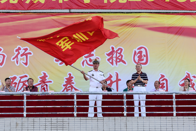 随后,王卫平院长向军训团授“东莞理工学院城市学院军训团旗”,正式拉开军训大幕。
