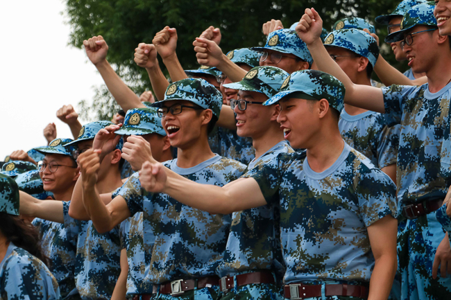 9月7日,军训各连队教官带领新生学习《城市学院之歌》。新生在学习的过程中都非常认真,歌颂着我们美丽的校园,唱出我们学而知不足,攀而求高远的心态,更是表达了为了民族的振兴,天天踏上新起点的追求。
