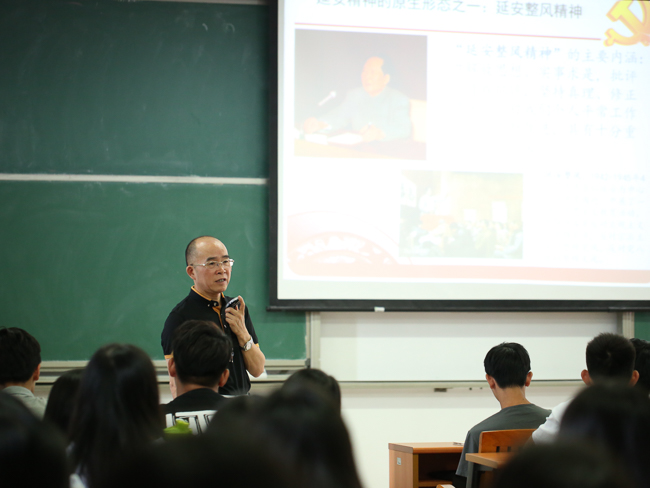 9月23日上午,王卫平院长在7B507教室为2016级新生们亲授了别开生面的思想道德修养与法律基础课程,就当代大学生如何培育和践行社会主义核心价值观进行探讨与讲解。