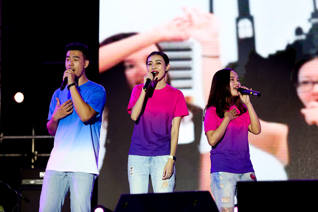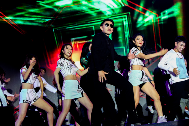 艺术系舞蹈专业的同学们带来舞蹈《绽放》,曼妙的舞姿、翩跹起舞的身影,呈上了一场唯美的视觉盛宴;由各系辅导员同台献唱的歌曲《我相信》,青春激扬,活力四射;校园十大歌手和电声乐队的表演,点燃了现场的气氛;曾获2016年中国超级模特大赛季军的钟欣彤同学带领艺术团CM模特队和电声乐队的表演,更是“嗨”翻全场——动感的步伐、一排排亮眼的帅哥美女,引来了“小鲜肉”们的阵阵尖叫声和欢呼声。