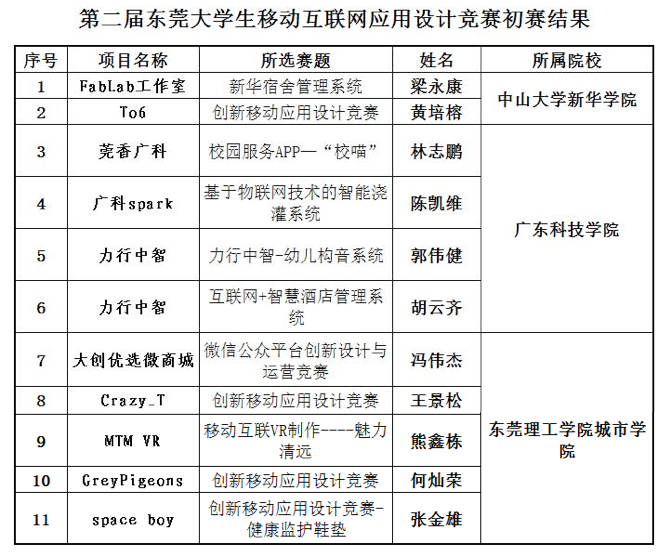 据悉,“科创节”全称为东莞市第二届大学生科技创新节,是由东莞市教育局、东莞市科学技术局、共青团东莞市委员会联合主办,以“科技引领未来,创新成就梦想”为主题的面对大学生的创新创业类赛事,活动内容包括科技创新创业大赛、创新技能竞赛(包括移动网应用设计竞赛在内的五个子项目)和科技大家讲坛。其中首届大学生移动互联网应用设计竞赛也由我院承办后,赛后获得一致好评,于是今年全票通过,继续由我院承办。院团委和计算机与信息科学系共同负责赛事的相关工作,决赛将在11月10日在我院学术报告厅举行。