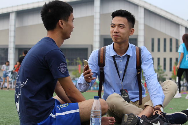 “赤脚使我身体更轻松,心里无负担,反正拼尽全力就好啦!”席地而坐时,庄卓渊同学爽朗的笑着谈及了他参加跳高比赛的的状态。或许,光脚更彰显了他乐观轻松的阳光心态,而这种心态正是运动员最美丽可贵的东西。